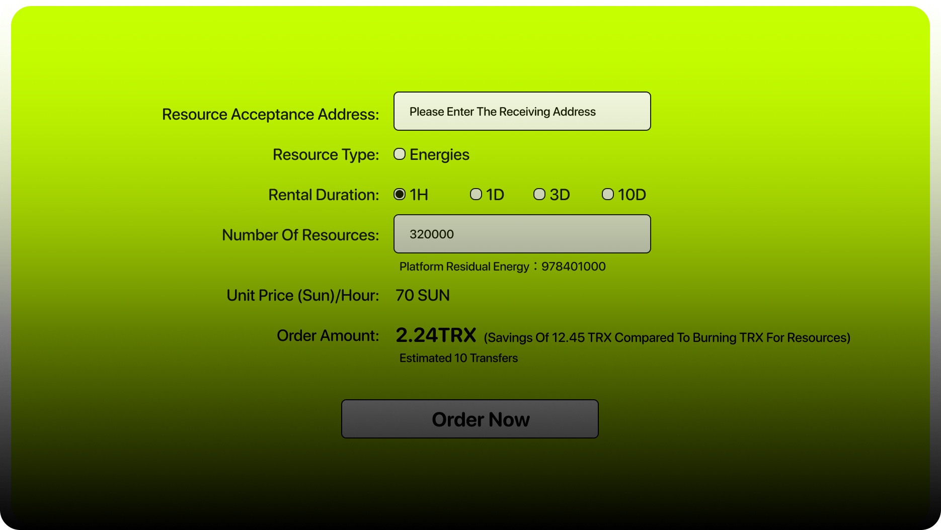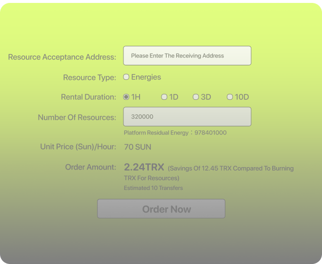 | Details | Lease for 1 month to 10 minutes Reduce gas fees to 2-5 TRX Use for on-chain confirmations |